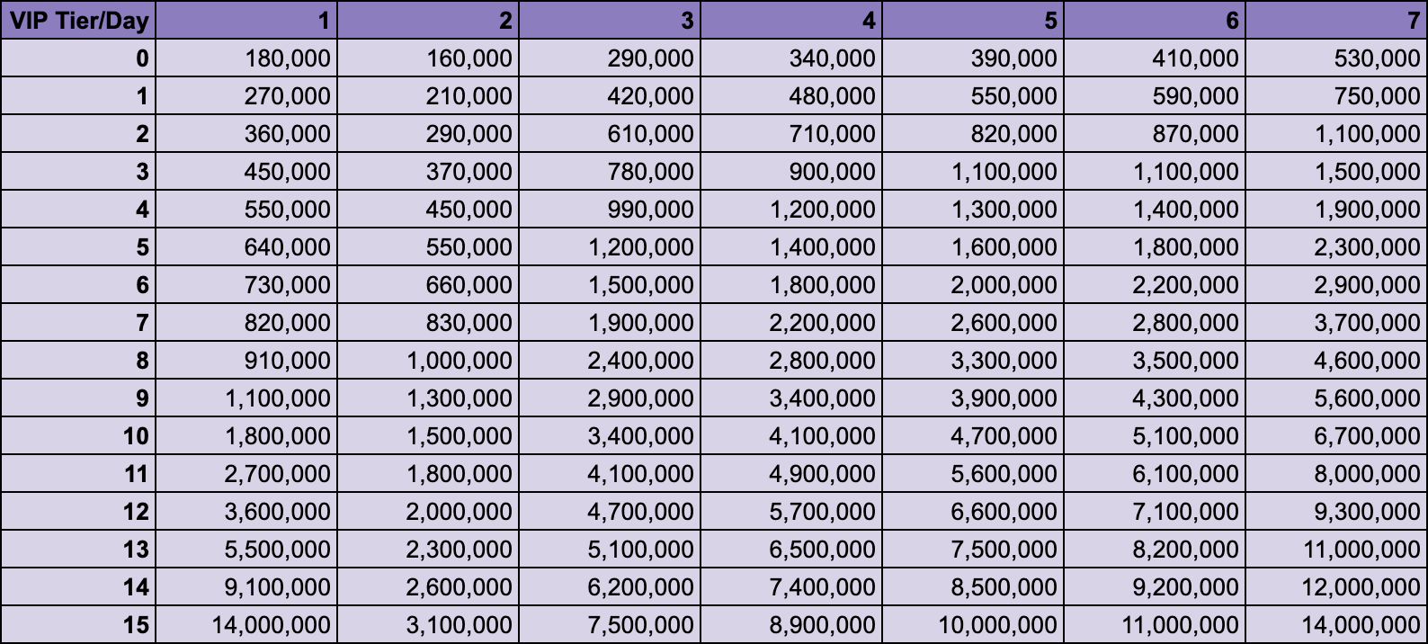 - The number of free virtual coins you receive for signing in depends on your VIP tier, as shown in the chart below.